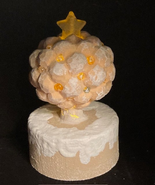 2025年12月の工房atari 個展「きらめく聖夜」で登場した手のひらサイズの光るオブジェです。